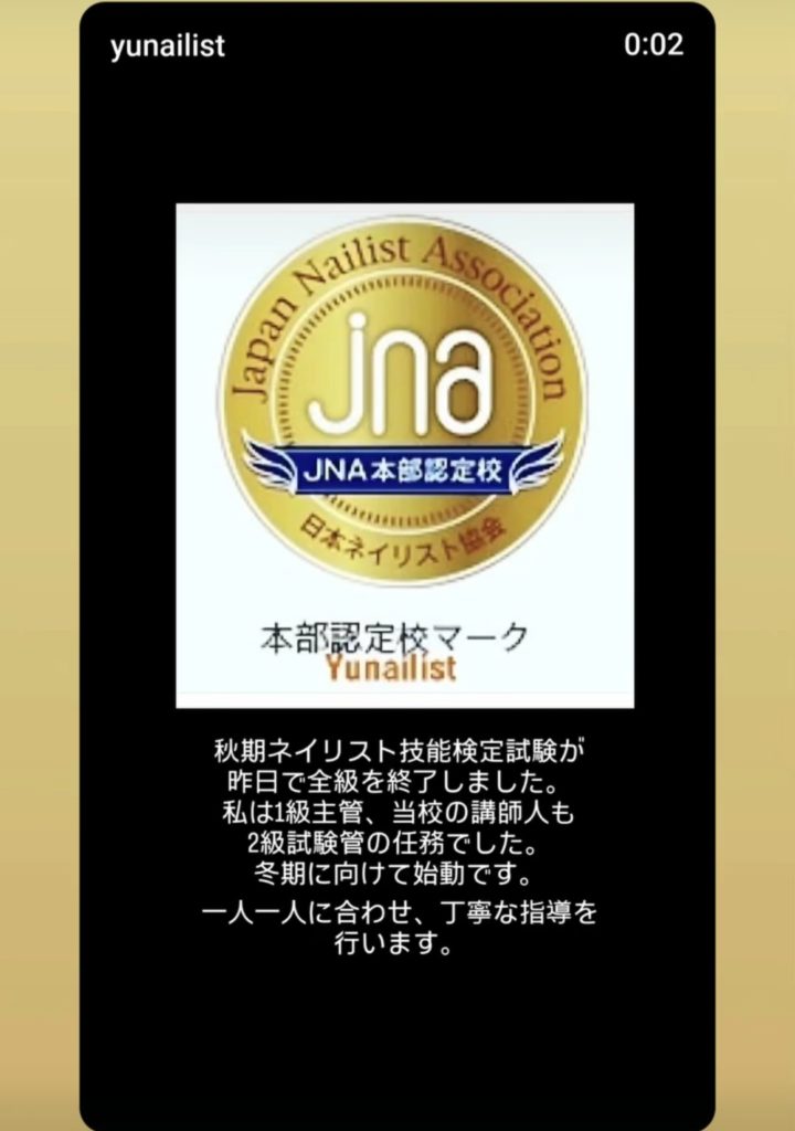 当校はJNA本部認定校ですのでジェルネイル技能検定試験も教室内で受験ができます。貴方の夢を一緒に叶えましょう。