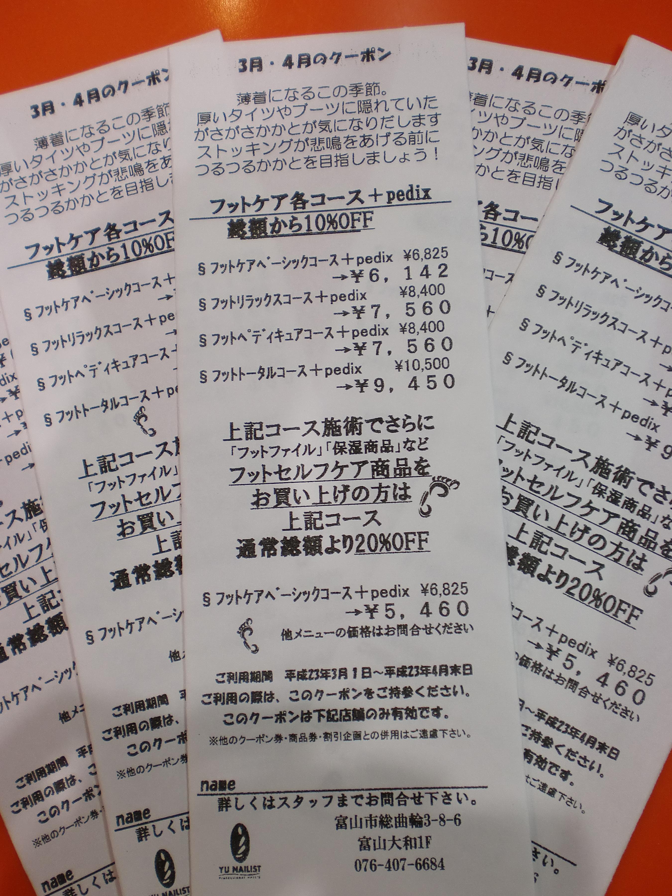 夏になっても焦ることのないよう、今からケアしていきましょう…というクーポンできました!
