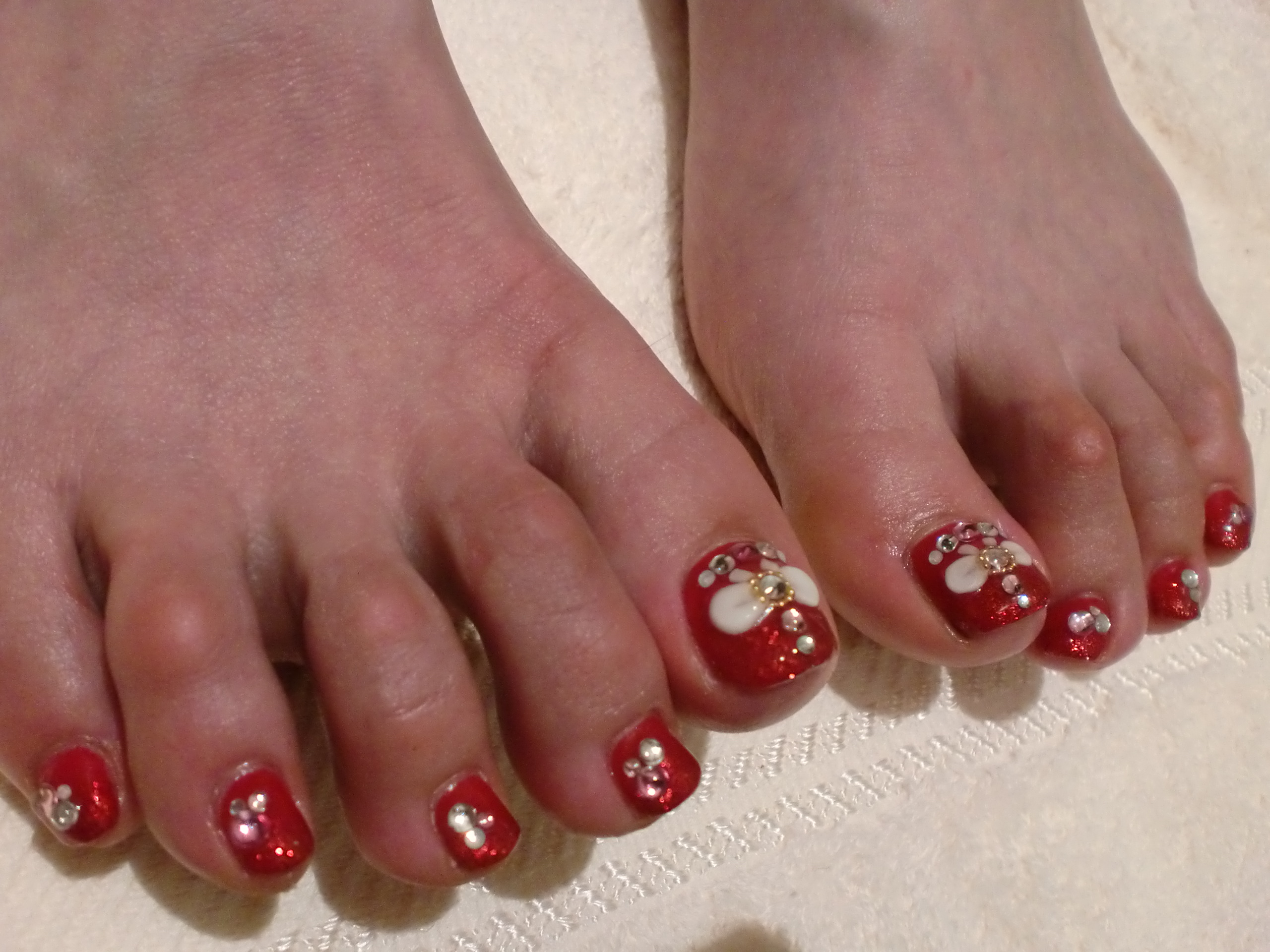 フットネイルもジェルならストーンが取れる心配もないので