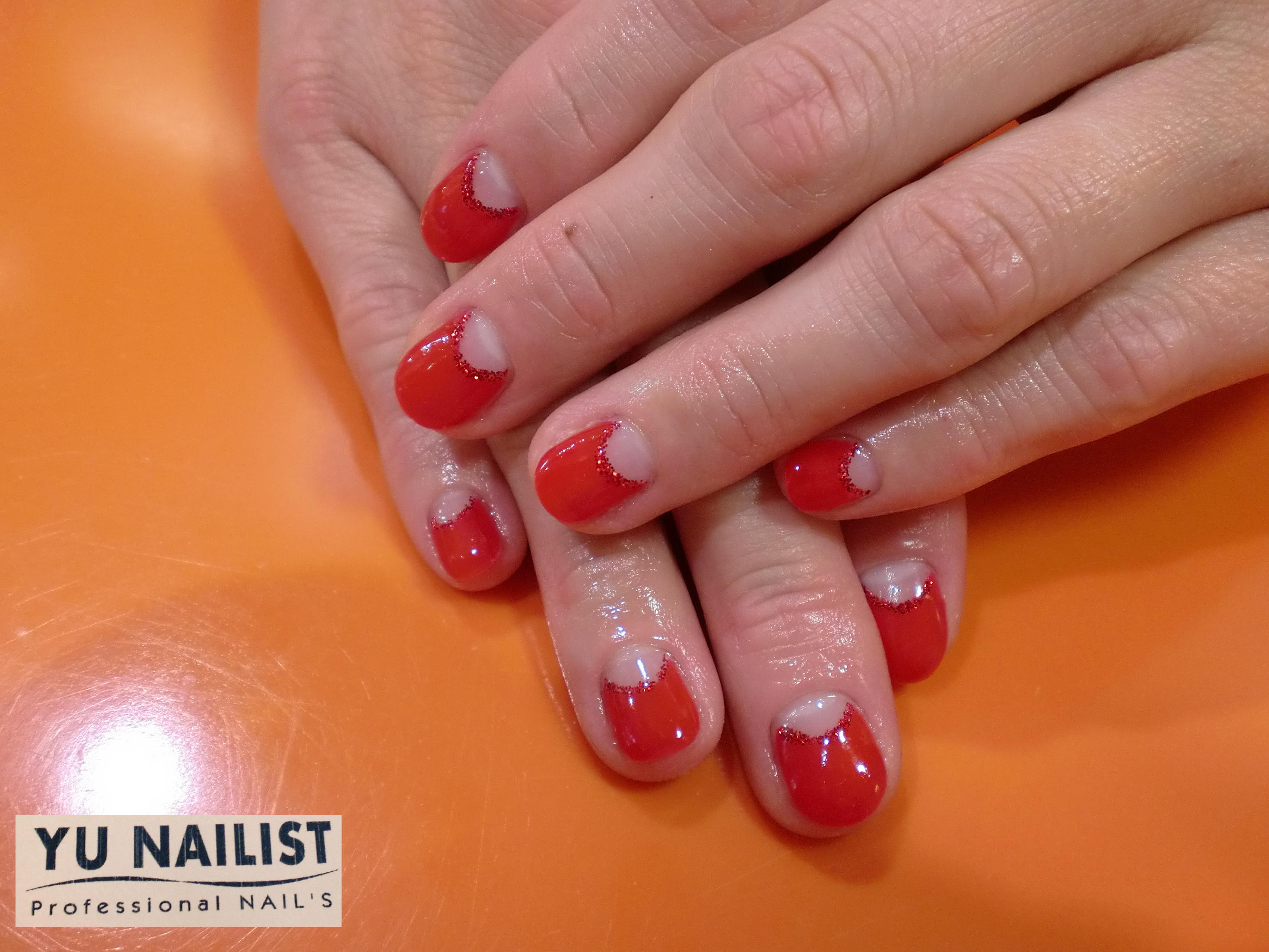 真っ赤なカラーに親指のリボンアートがとってもキュートですね。