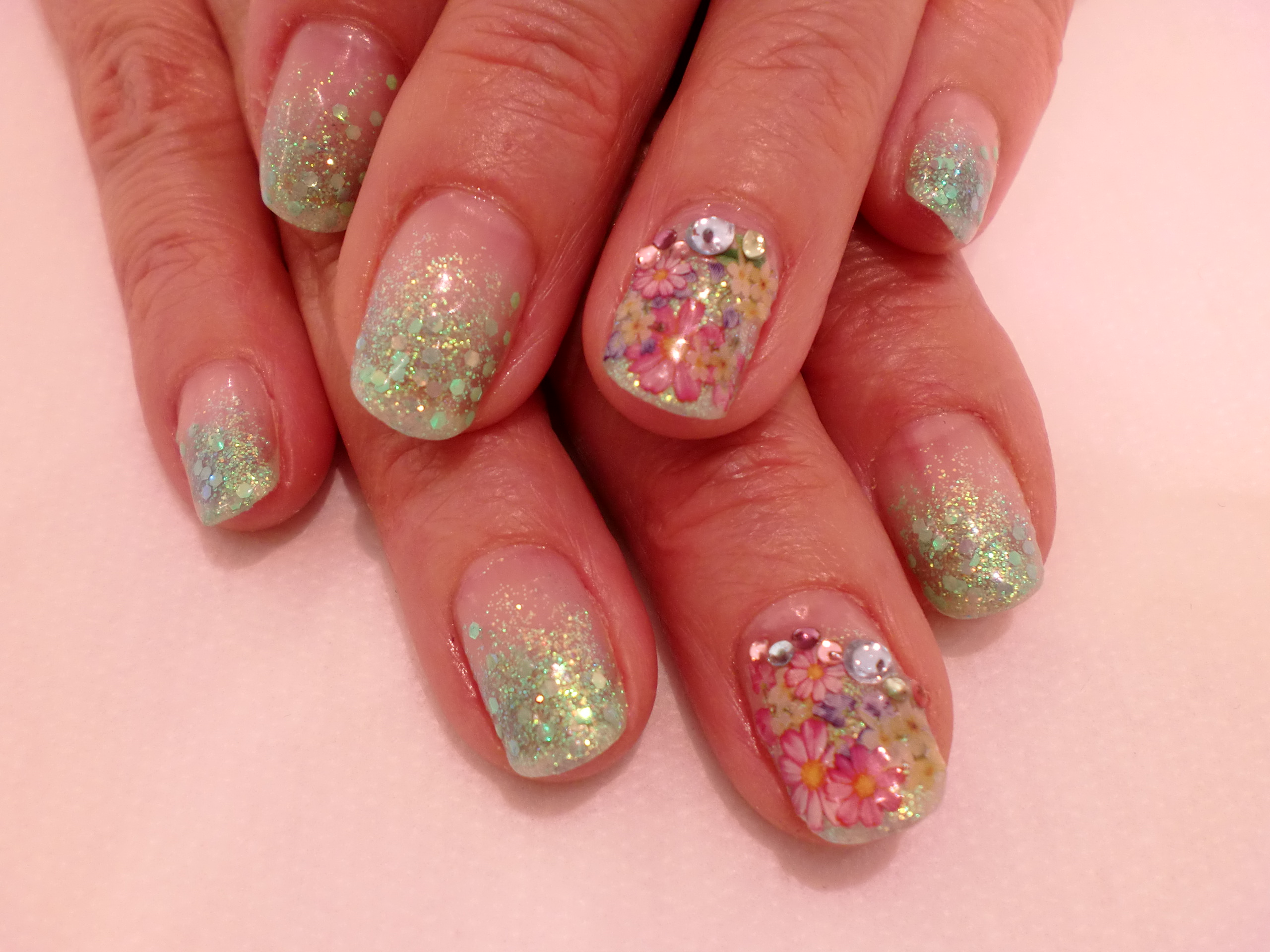 さわやかな、ミントグリーンのラメに
