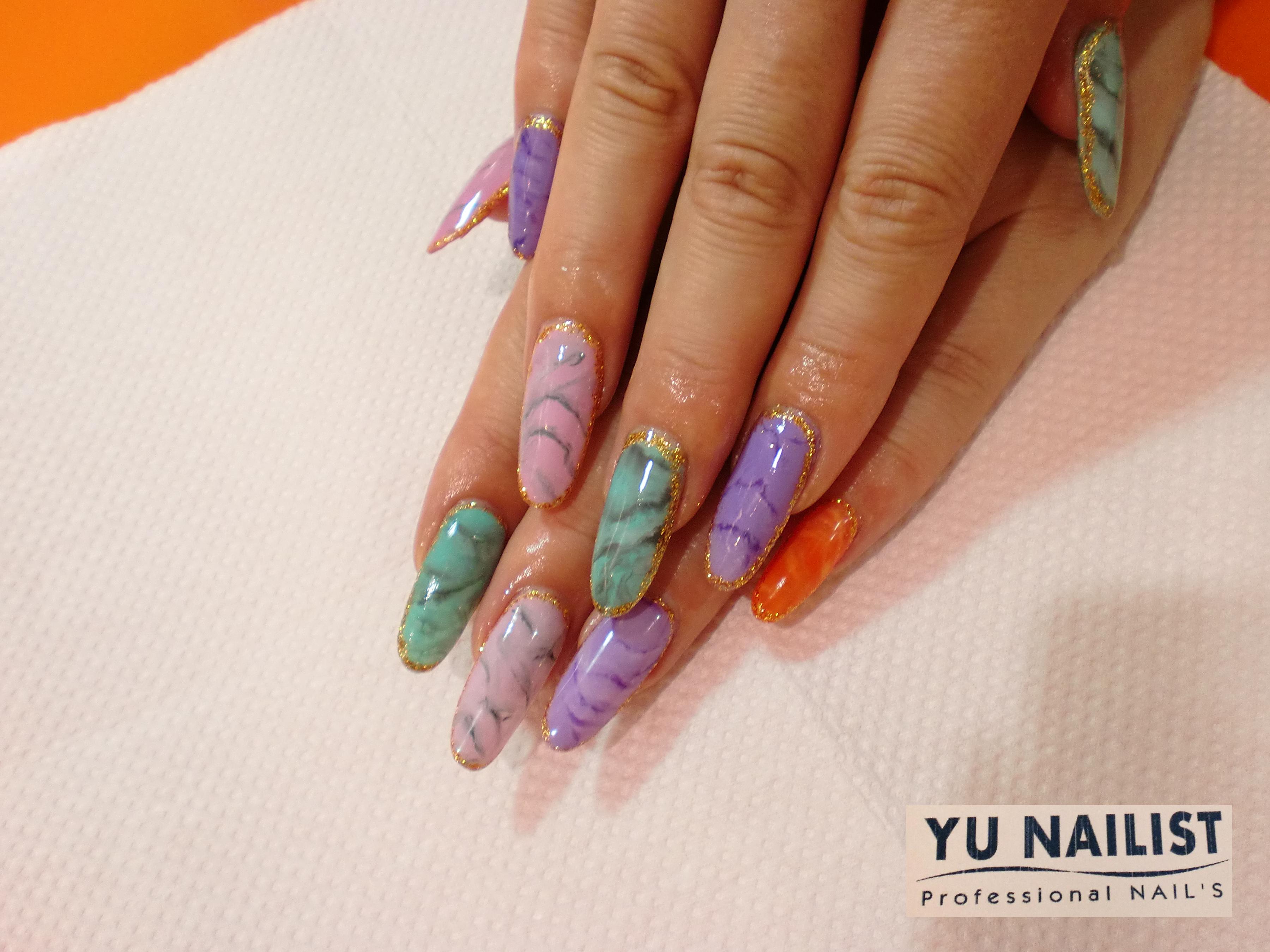 アクリルスカルプの上にジェルでカラーです。