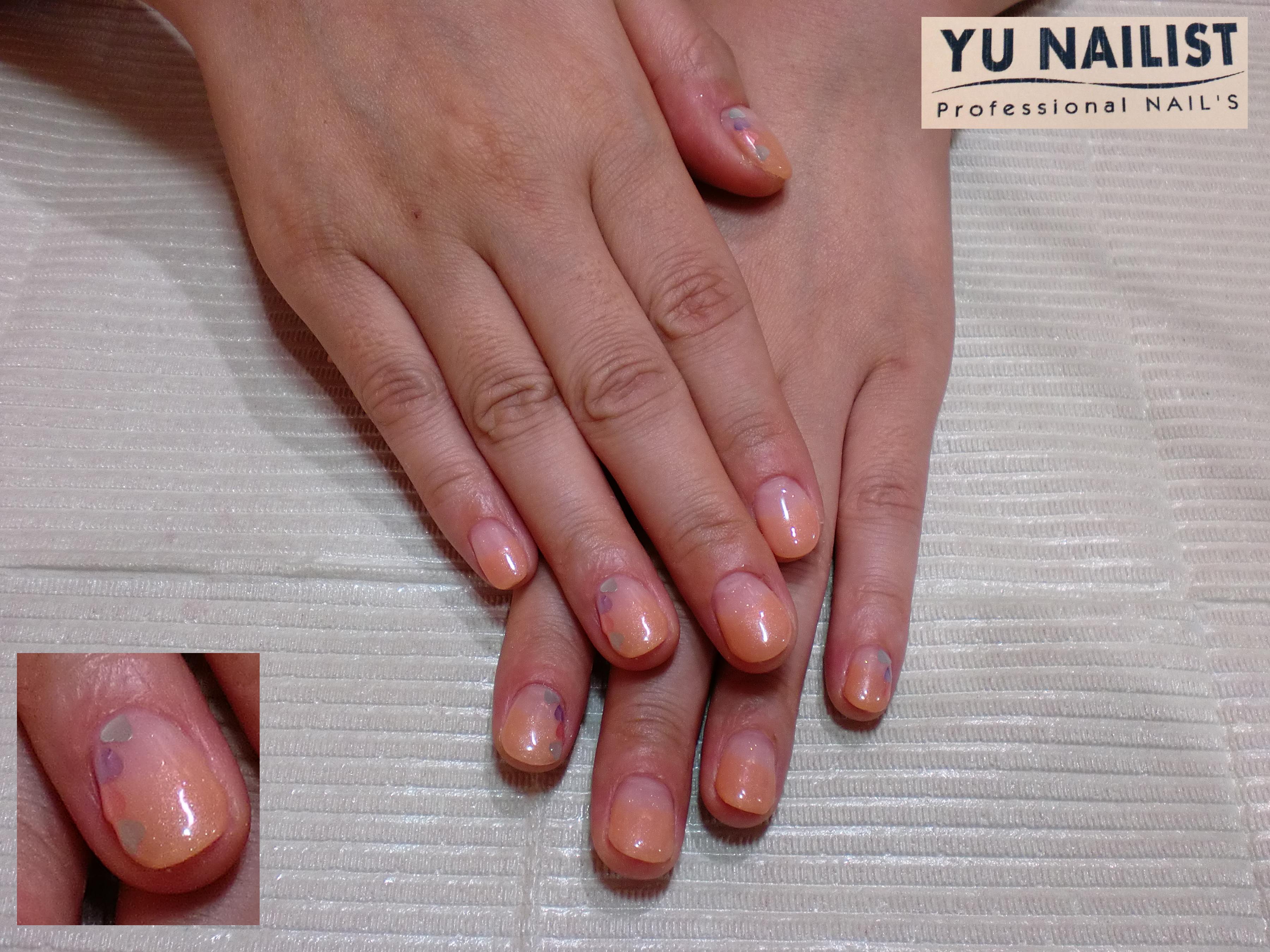 ベージュのグラデーションに入荷以来大人気のハートのホロをプラス。