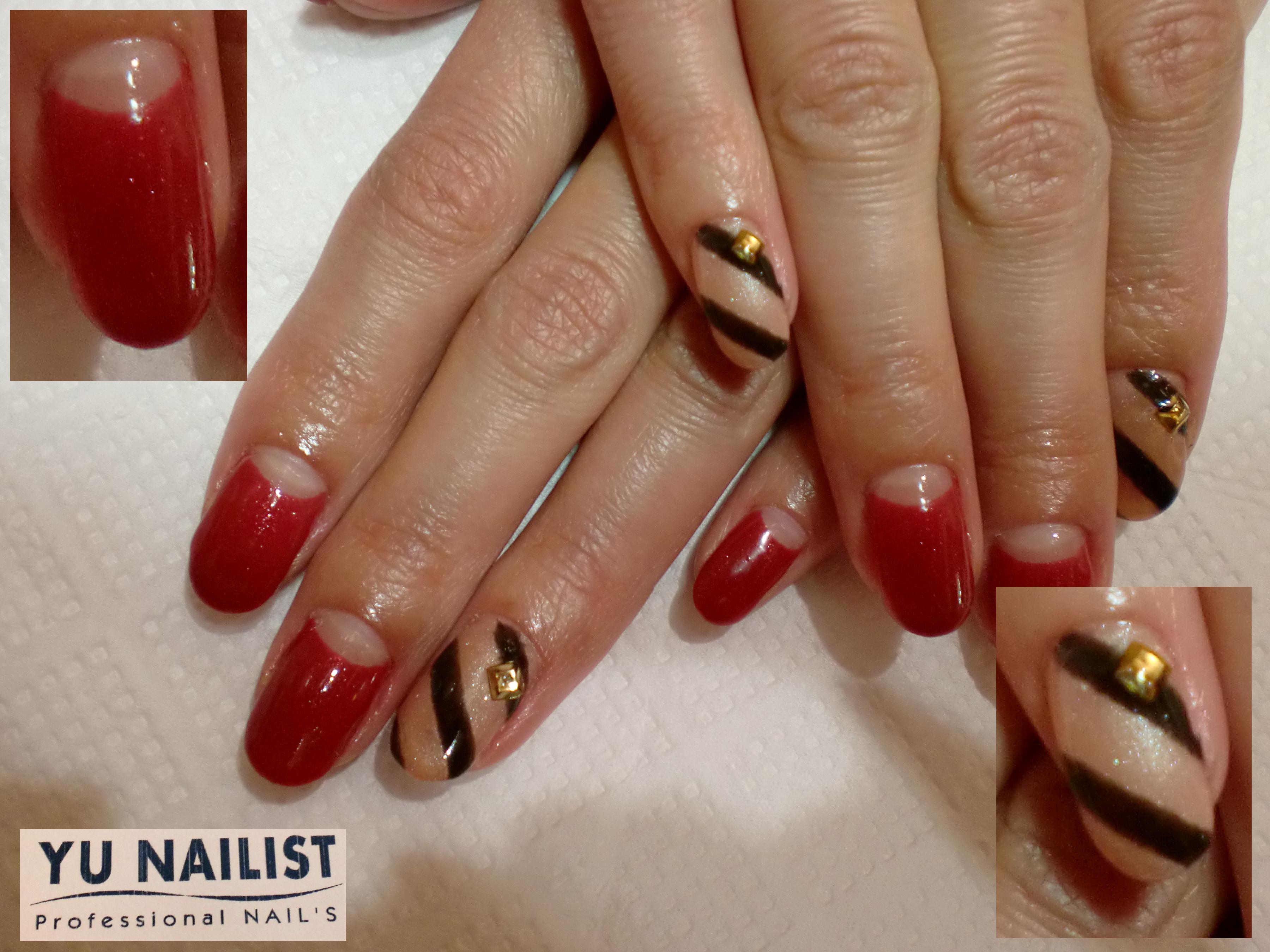 赤の逆フレンチでシックでエレガントな女性の部分を。