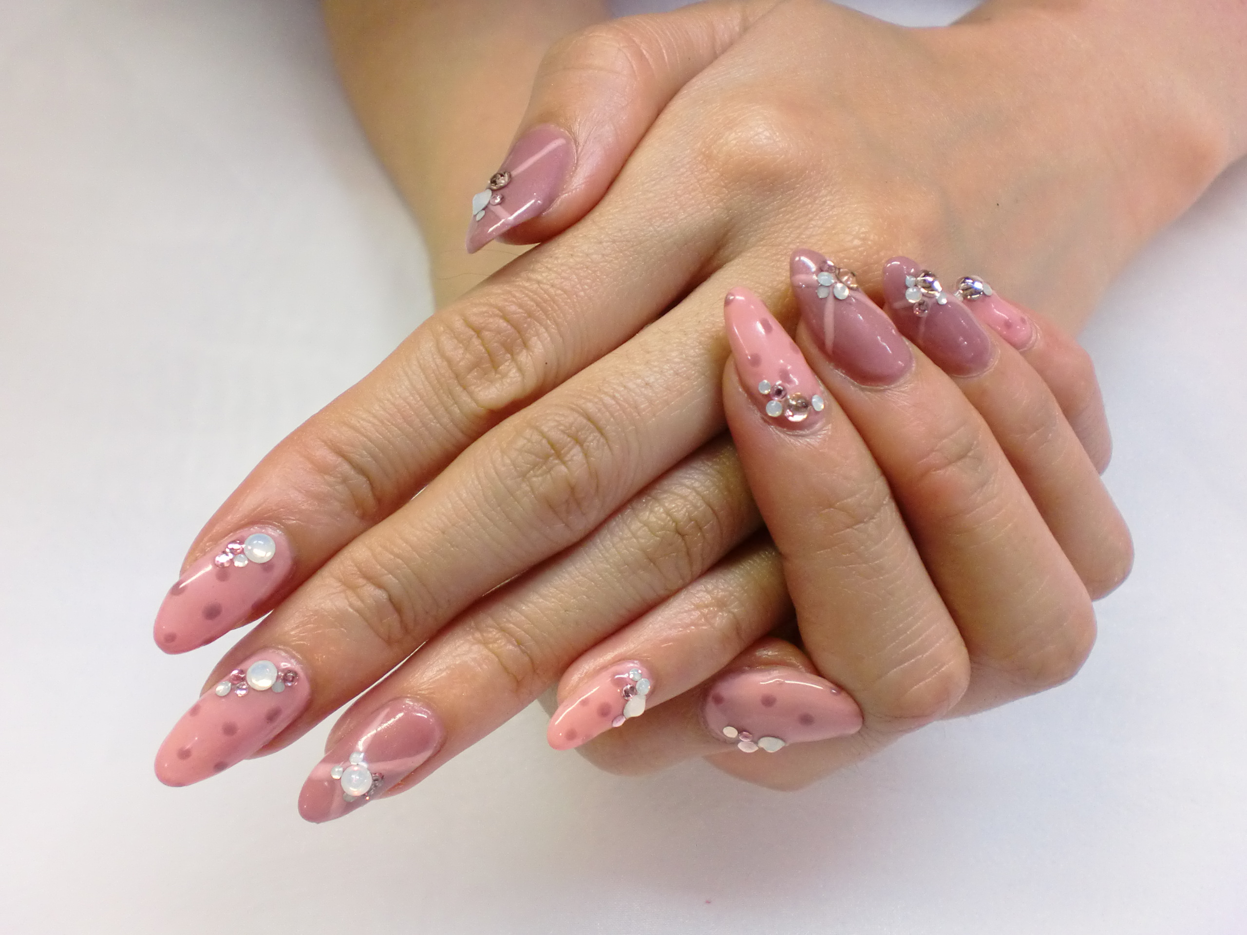 ②パール系カラー+ラメ×ストーン…大人カワイイ系