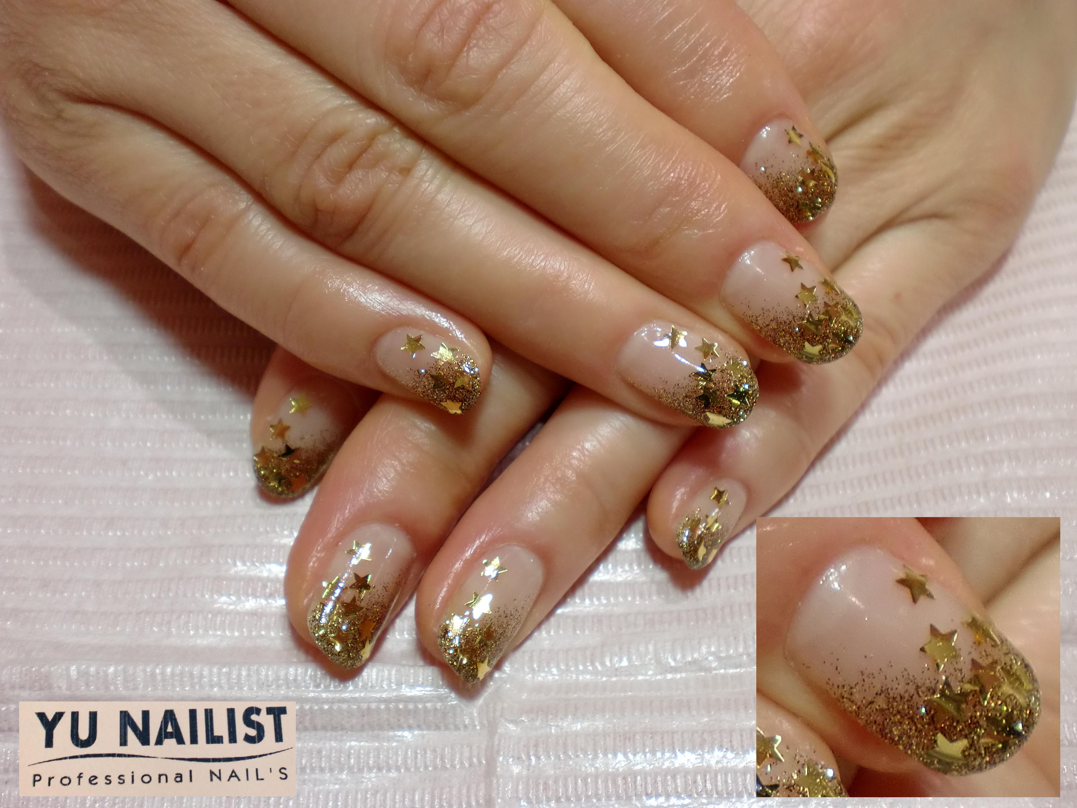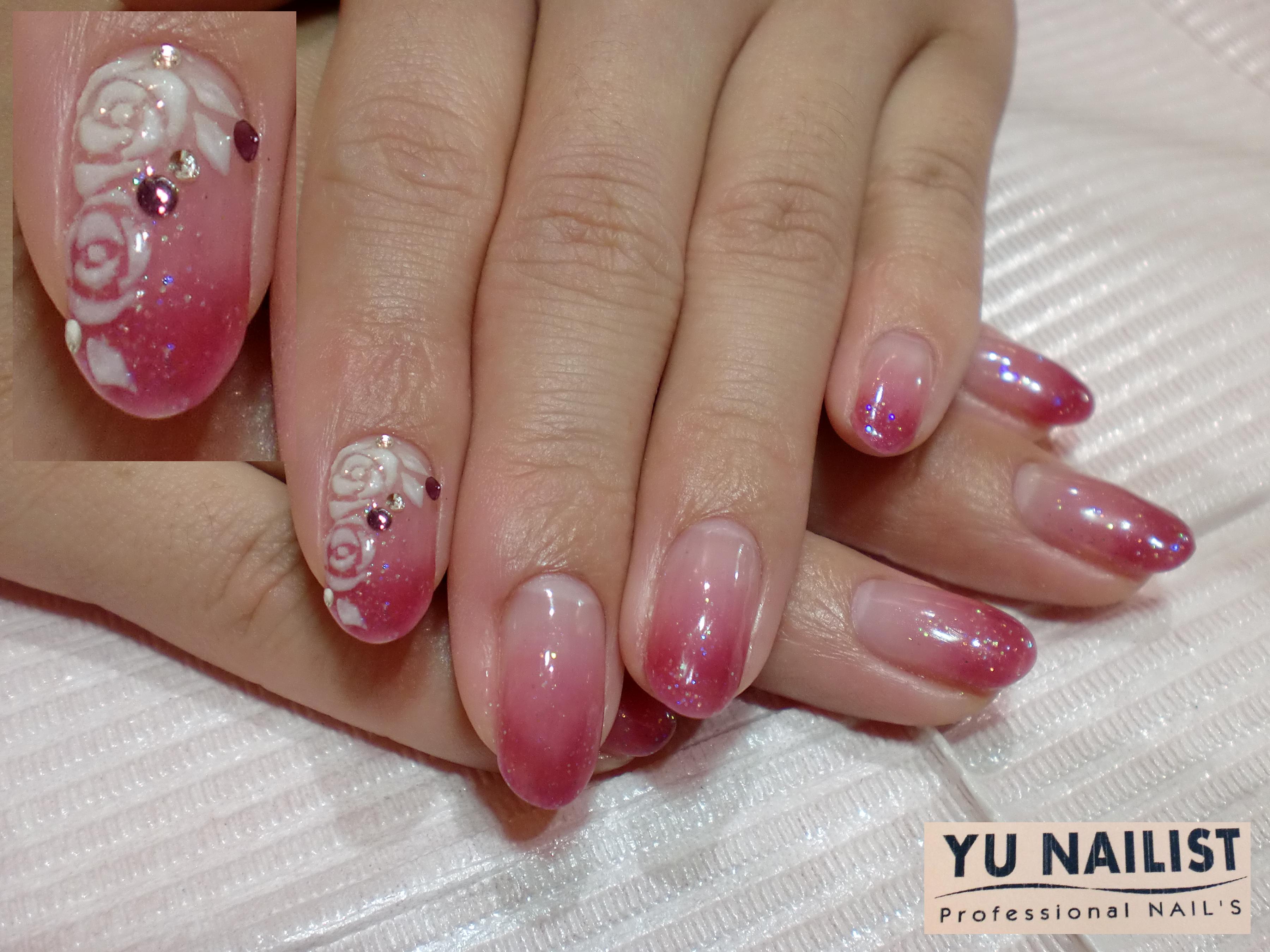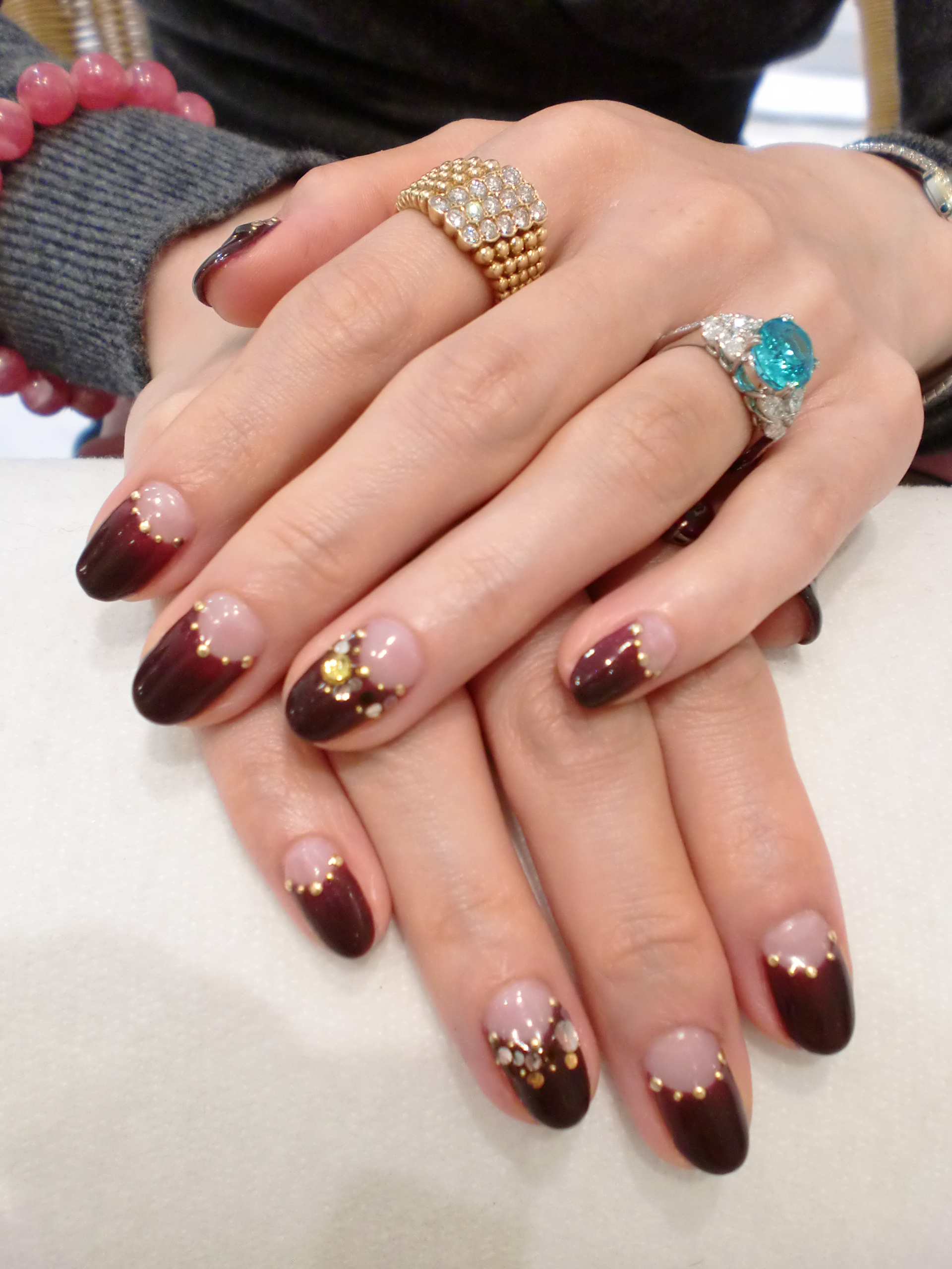 さりげなくグリッター入りのワインレッドをグラデーションで。