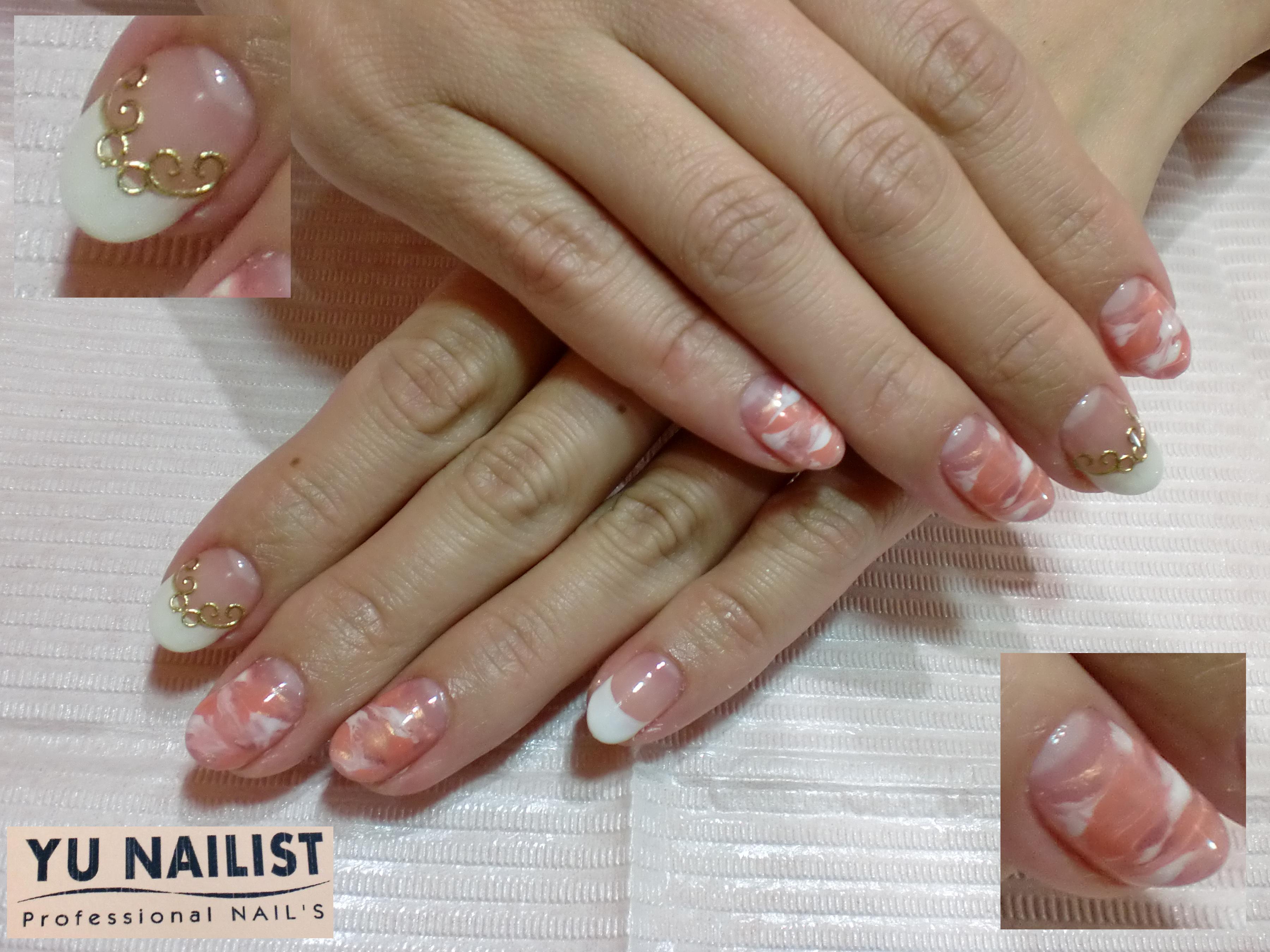 ②ピンク+ブラウンフレンチ×マーブル…バレンタイン仕様