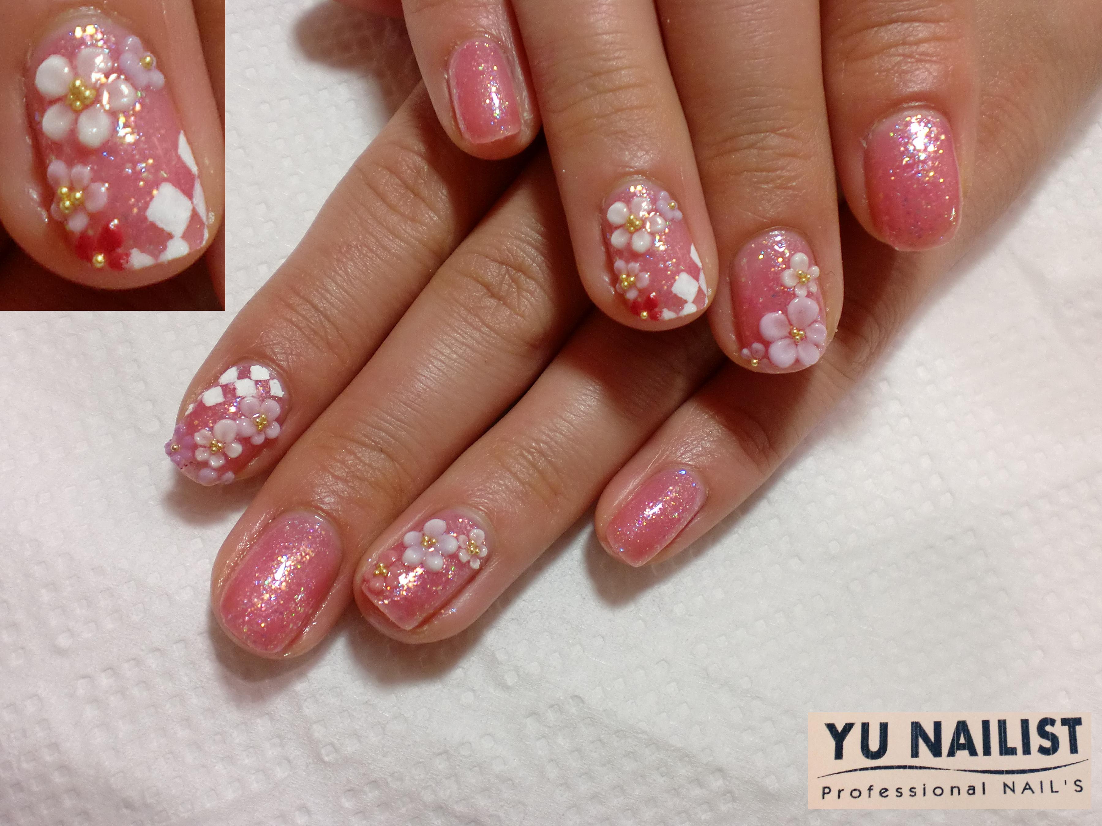 薄めのピンクをベースにお好きだというミントグリーンでグラデに。