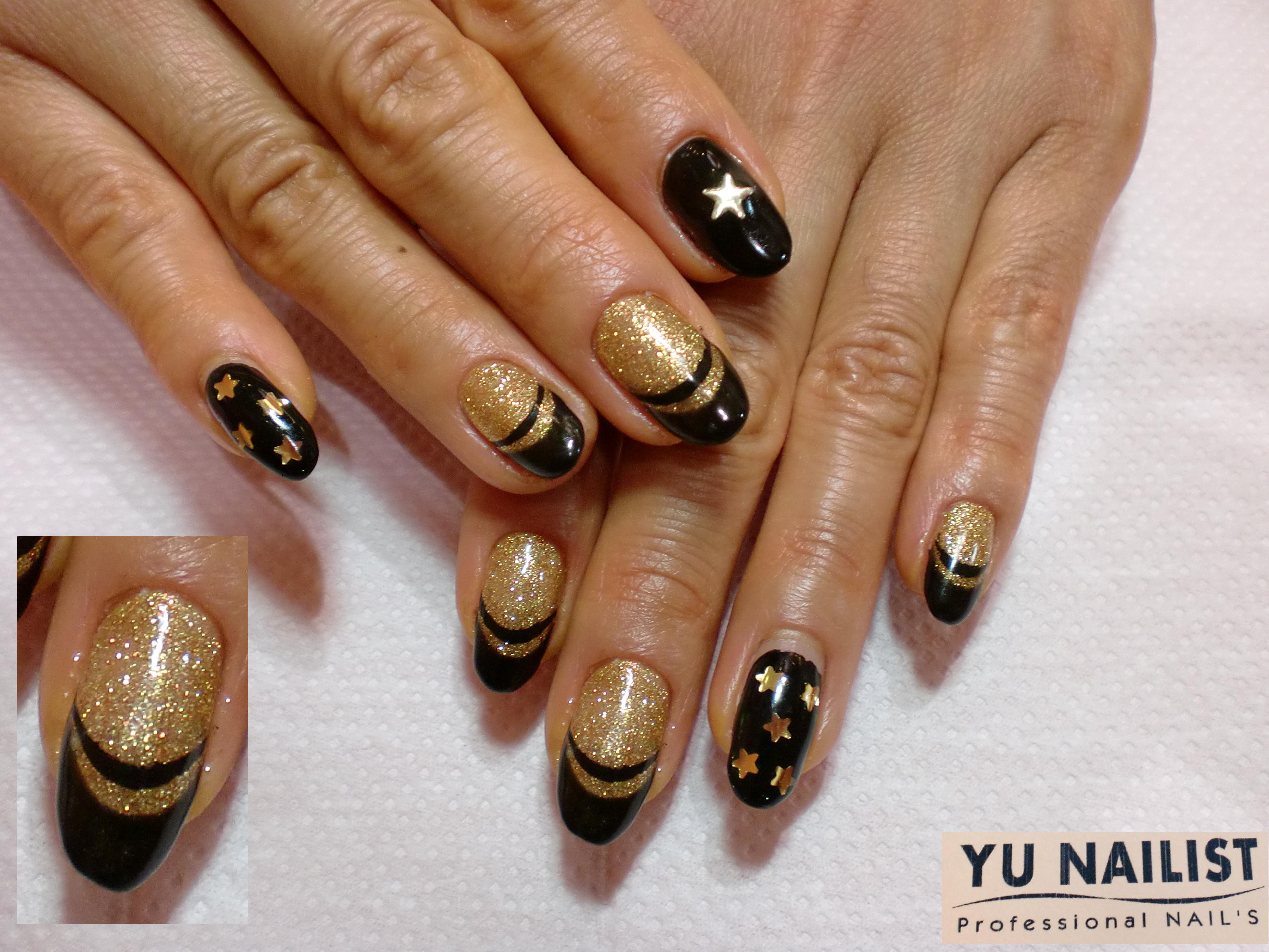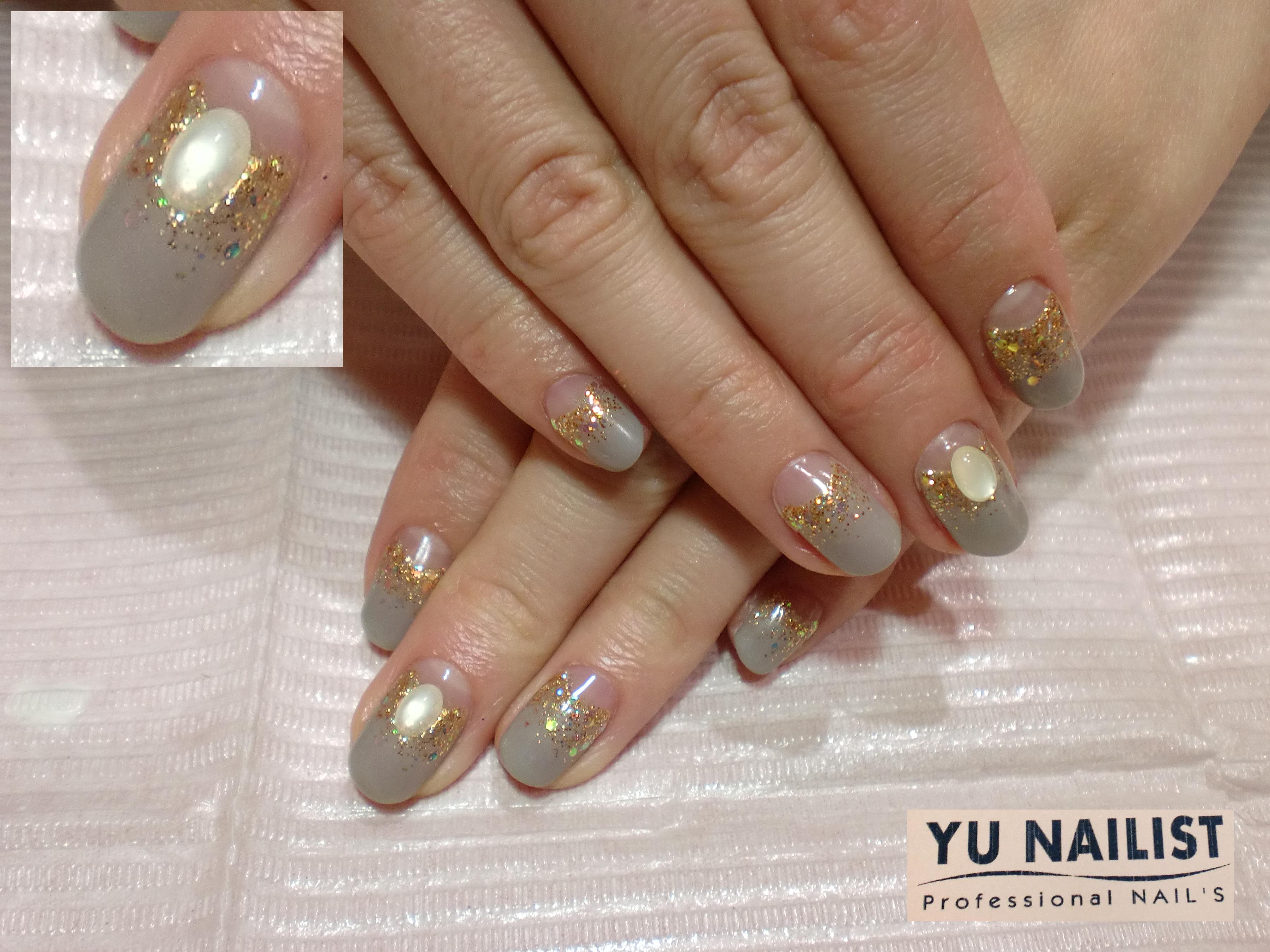 こちらは反対にフレンチ部分にゴールドを。