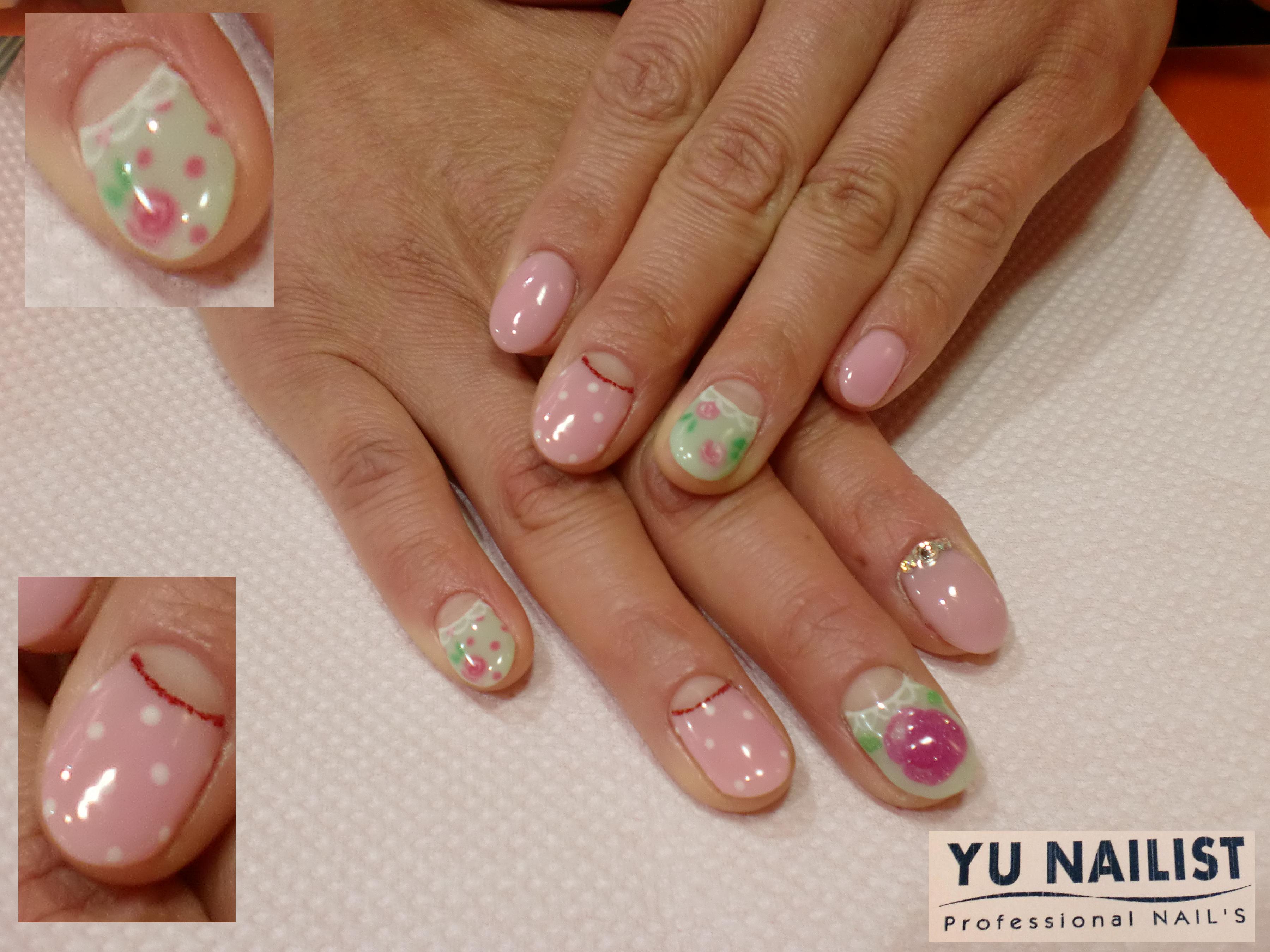こちらのお客様はグリーンをもっと強調されたいとのことで、親指は全面に。さらにレース追加。