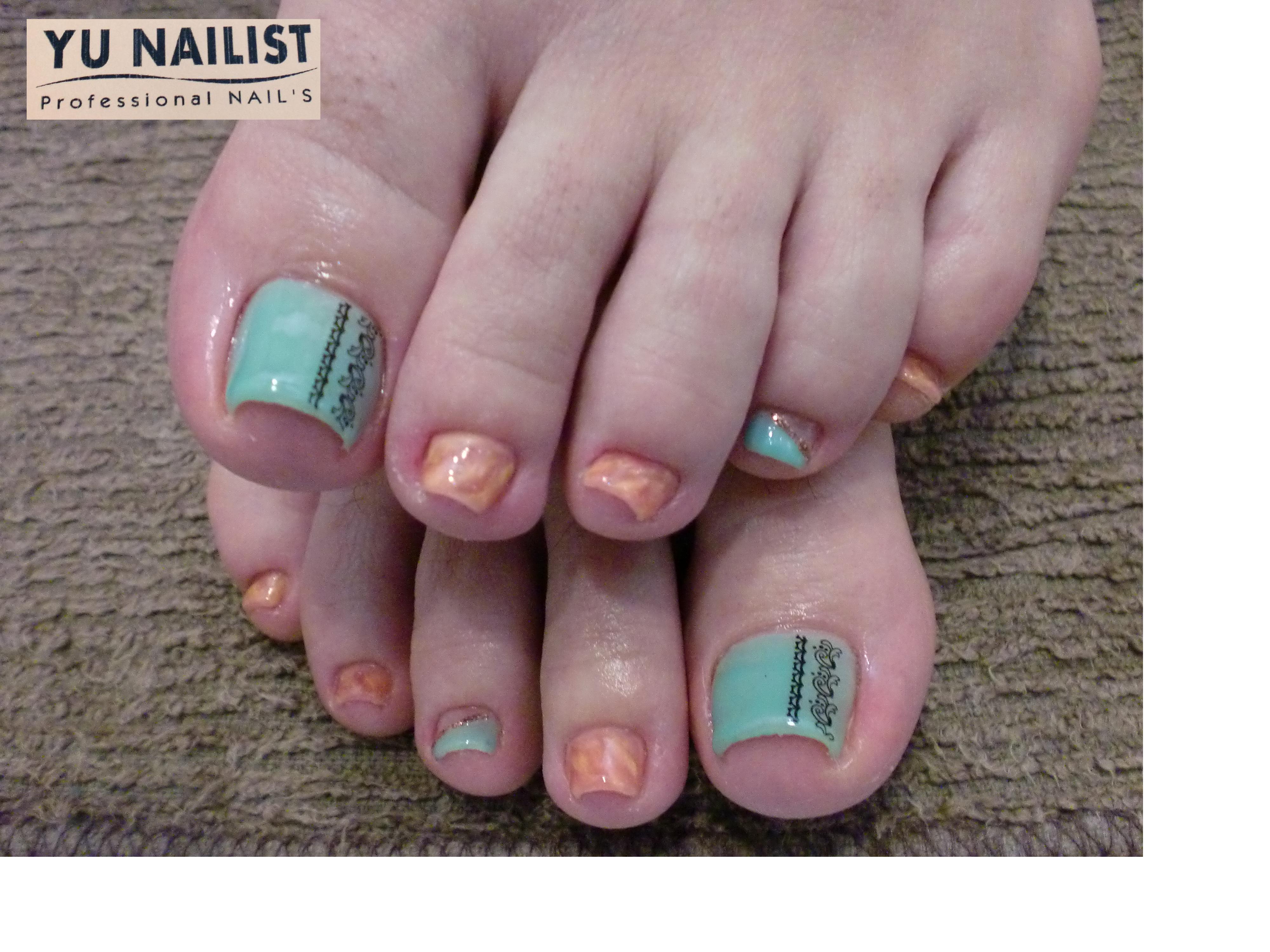 〇フレンチ×マーブル/人気のミントグリーンにタイダイなマーブル!!